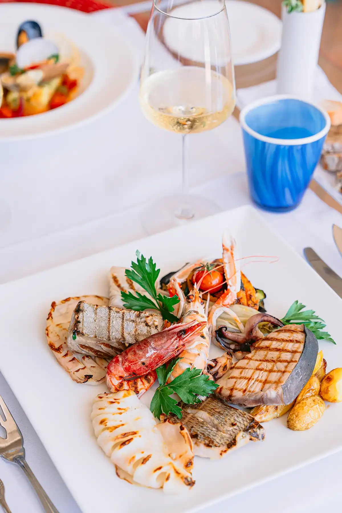 Dalla magnifica terrazza sul mare, una carezza… il ristorante Savino si allunga sulla spiaggia, dove il panorama invita ai sapori e alle gioie della tavola